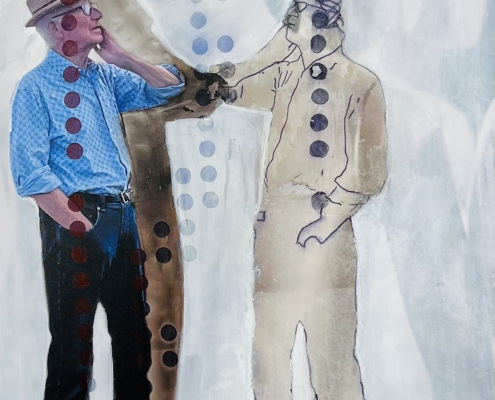 Bei der neuen Serie Figurenzimmer geht es um die künstlerische Auseinandersetzung mit dem Dazwischen: den unausgesprochenen Spannungen, der Energie zwischen den Figuren, den Echten und den Unechten, dem Unsichtbaren, das oft mehr sagt als Worte.